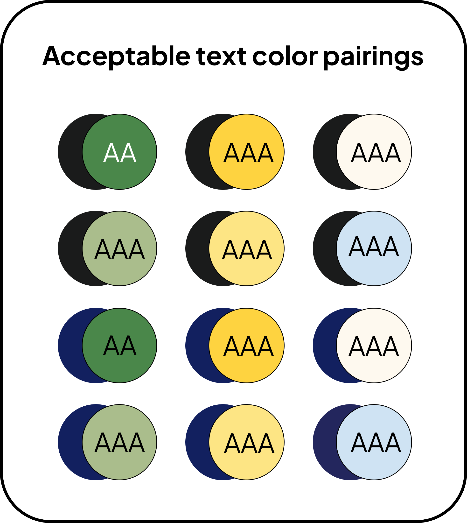 We want everyone to be able to read and use our brand materials, including people with vision differences. To do this, we follow two levels of contrast standards: